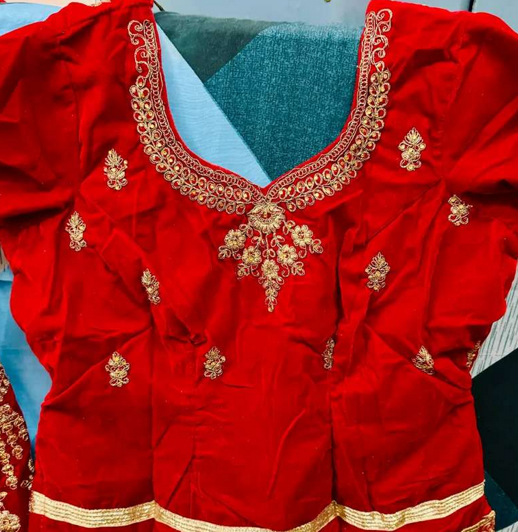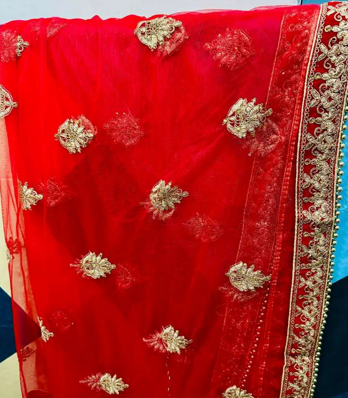 Bridal lehenga red colour with red dupatta one time used
